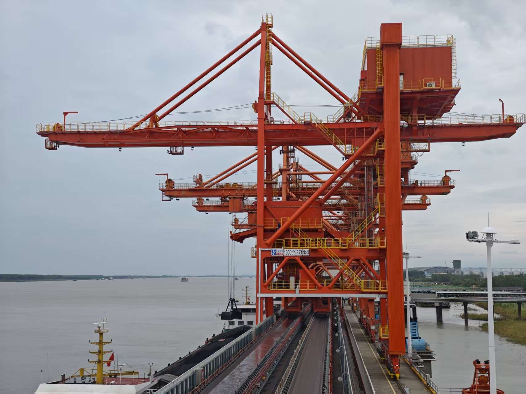 本項(xiàng)目中,華新機(jī)電負(fù)責(zé)的2臺1000噸/小時(shí)全自動(dòng)橋式抓斗卸船機(jī)采用“交鑰匙”工程模式,為電廠燃料穩(wěn)定供應(yīng)提供了堅(jiān)實(shí)保障。該設(shè)備在技術(shù)上實(shí)現(xiàn)了兩項(xiàng)重大突破。
